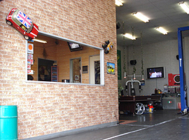 当店では車の販売や修理するスペースだけでなく お客様にごゆっくりくつろいで頂くために
